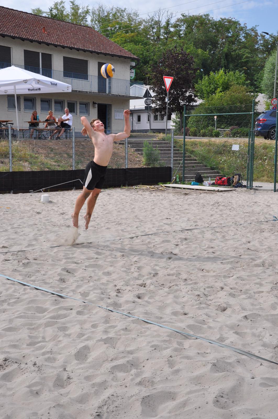 4. August 2020Yannick Ungemach vom TuS und sein Partner Justus Schenk vom TV Dürkheim, die das erste Mal miteinander auf dem Platz standen, gingen als Außenseiter in dieses Turnier. Die beiden anderen Teams waren bereits mehrmals auf Deutschen Meisterschaften vertreten.