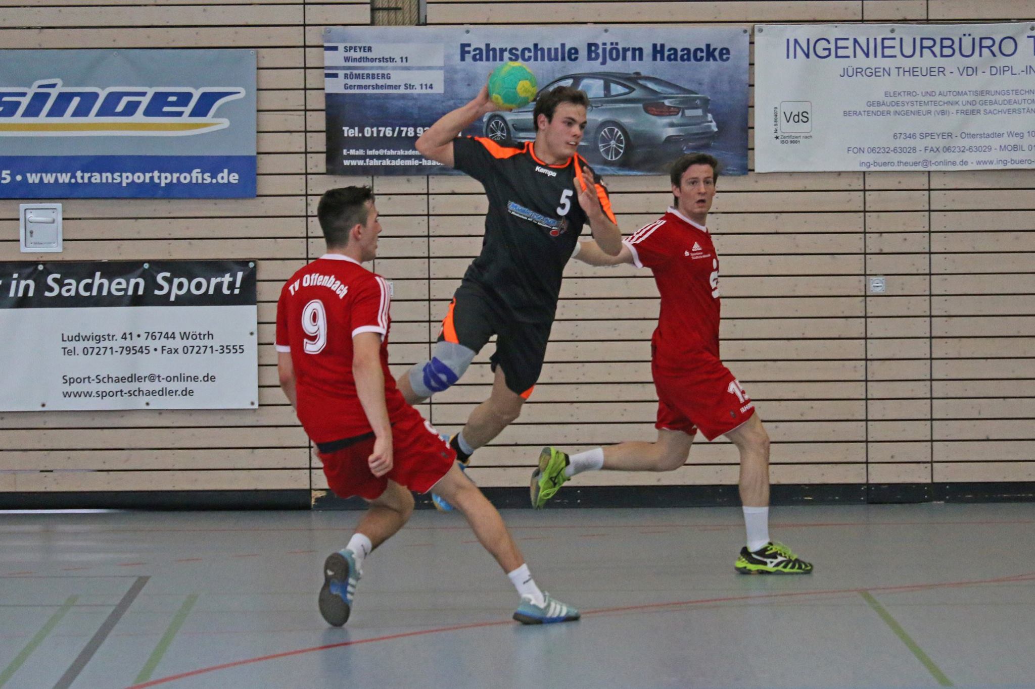 In den ersten 10 Minuten taten sich die TUS-Jungs etwas schwer gegen den TV Offenbach. Über ein 6:6 fanden die Heiligensteiner ab der 12. Minute wieder zu ihrem schnellen Handballspiel zurück und konnten sich über 13:7 bis zur Halbzeit auf 22:12 absetzen. In der zweiten Halbzeit war der Sieg zu keiner Zeit gefährdet, so dass es zu einem sichereren 38:25 Endergebnis für den TUS kam. Dieses Resultat ist wieder einmal einer sehr geschlossenen Mannschaftsleistung und einem außerordentlichen Teamgeist zu verdanken,
