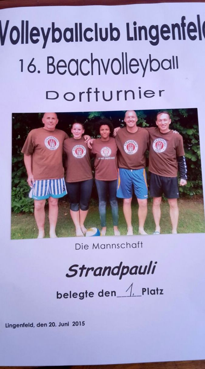 29. Juni 2015Dass es die Handballer auf auf dem Beachvolleyballfeld können, bewiesen sie bei dem schönen Beachturnier für Freizeitmannschaften in Lingenfeld am 19. und 20.06.15. In der Vorrunde wurden vier Erfolge verbucht, in der Hauptrunde mit 3:1-Siegen das dann ebenfalls positive verlaufende Halbfinale erreicht.