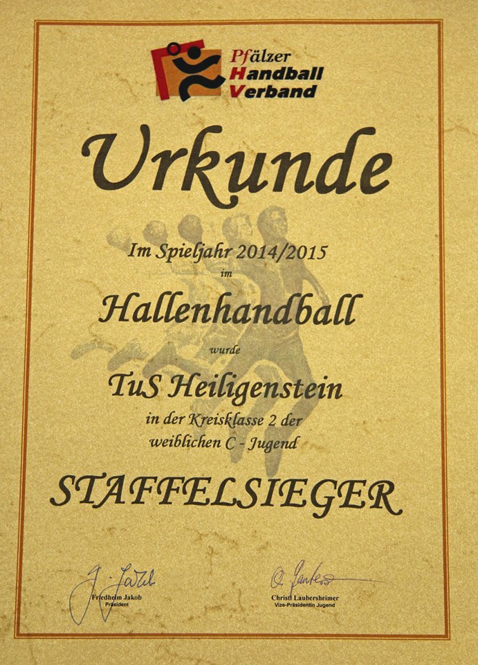 26. April 2015Im letzten Spiel gegen die JSG Landau/Land verloren die Mädels der wC-Jugend das Spiel zwar mit 23:26, doch dem TuS war mit Blick auf den direkten Vergleich (das Hinspiel gewann der TuS mit 28:33) der Staffelsieg und damit die Meisterschaft sicher.