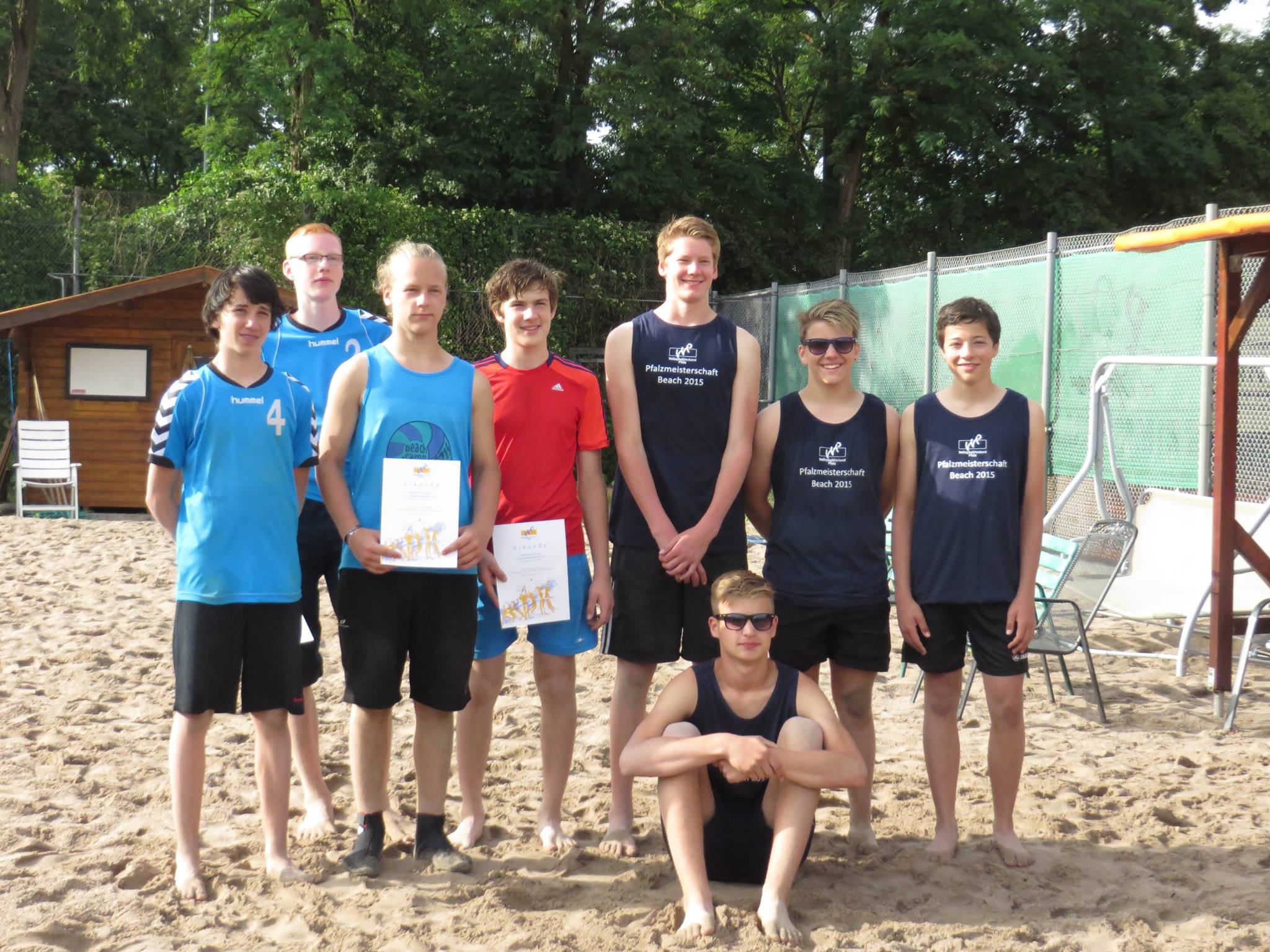 22. Juni 2015Mit vier Jungsmannschaften startete der TuS gestern bei der Beach-Pfalzmeisterschaft U17 in Speyer. Bei wechselhaften Wetter wurde zunächst in Gruppen gegeneinander gespielt. Nach den Gruppenspielen wurden im doppelten K-O-System gespielt. Dadurch gab es viele schöne Spiele, aber auch viele vereinsinterne Duelle. Das Team von Felix und Jan arbeitete sich bis ins Finale vor. In einem spannenden 3-Satz-Spiel setze sich das Team aus Germersheim und Lingenfeld gegen Heiligenstein durch. Wegen eines heftigen Regenschauers musste das Finale kurzzeitig unterbrochen werden. Der Match-Ball und die Siegerehrung fand wieder bei herrlichem Sonnenschein statt.