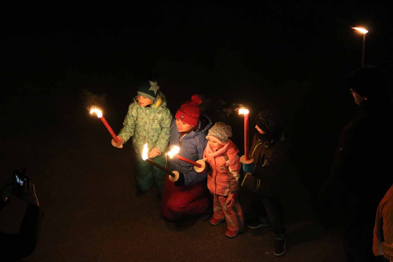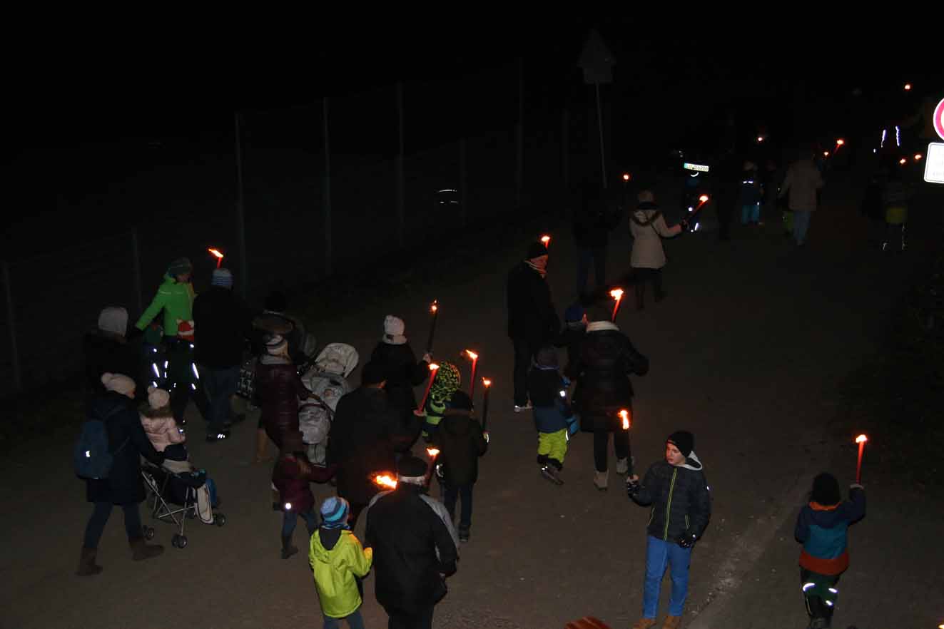 Erfreulich war auch, dass viele unserer Kleinsten samt Eltern und einigen Kinderwägen – trotz der Temperaturen- den Weg zum TuS fanden. Als die Dunkelheit kam, wurden die Fackeln nebst Sicherheitshinweisen ausgegeben und – bis auf wenige Ausnahmen – machten sich viele Gäste auf den etwa 2,5 Kilometer langen Wanderweg.