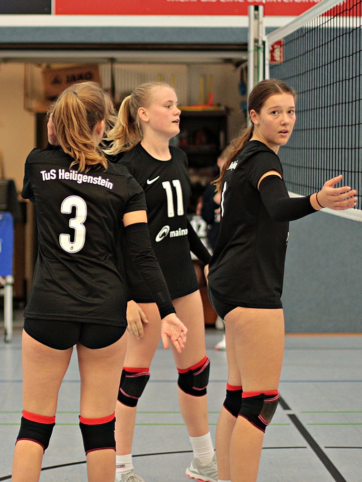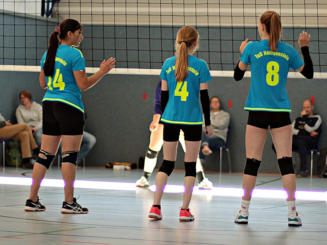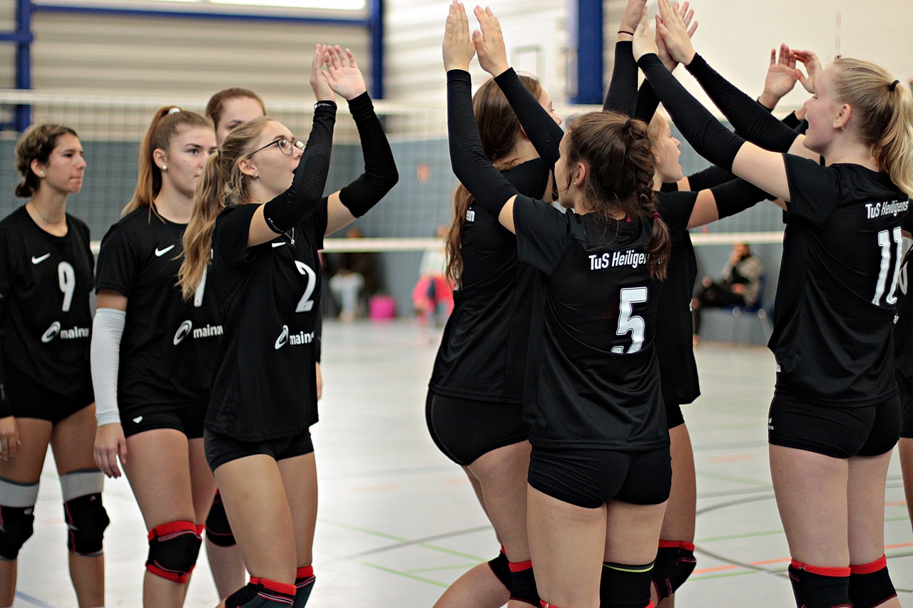 Beim nachfolgenden Spiel gegen die selbstbewussten US-Girls des TV Rodenbach Gold musste der TuS 1 vorallem zum Ende des ersten Satzes aufpassen. Es ging punktemäßig immer eng zu, beide Mannschaften standen sich auch spieltechnisch bei Aufschlag und Annahme in nichts nach. Das 21:21 hielt das Spiel spannend. Glück für Heiligenstein, dass die Rodenbacher Angaben in dieser Phase vermehrt im Aus landeten. Doch Martha Walter brachte mit präzisen Aufschlägen und Augenmaß am Netz den TuS in Führung (25:22).