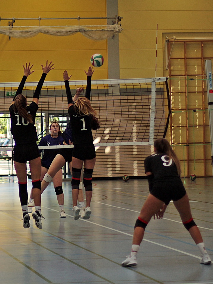 Beim źweiten Spiel gegen TV Rodenbach Gold war von Beginn an ständige Konzentration nötig. Die US-Girls erkämpften sich einen 3-Punkte Vorsprung, bis der TuS mit etwas Glück den Ausgleich erzielte. Den ganzen 1. Satz über blieben beide Mannschaften gleichauf. Es gab mehrere schöne Ballwechsel und Netzaktionen, bei denen sich vor allem Miriam Metzger in Szene setzte. Immer wieder hielt Rodenbach einen knappen Vorsprung, der erst durch Helen Tahirovic ausgeglichen werden konnte. Ihr Ass zum 19:17 für Heiligenstein zeigte Wirkung, jetzt musste sich Rodenbach dem steigenden Druck beugen. Hannah Kirchner legte mit einem weiteren Ass nach, schlug dann aber den nächsten Aufschlag ins Netz. Rodenbach konnte trotzdem kaum mehr punkten und gab den Satz am Ende mit 25:20 an den TuS.