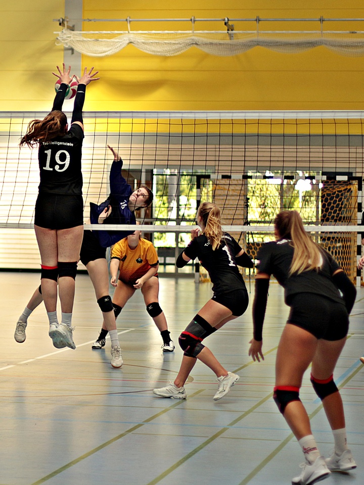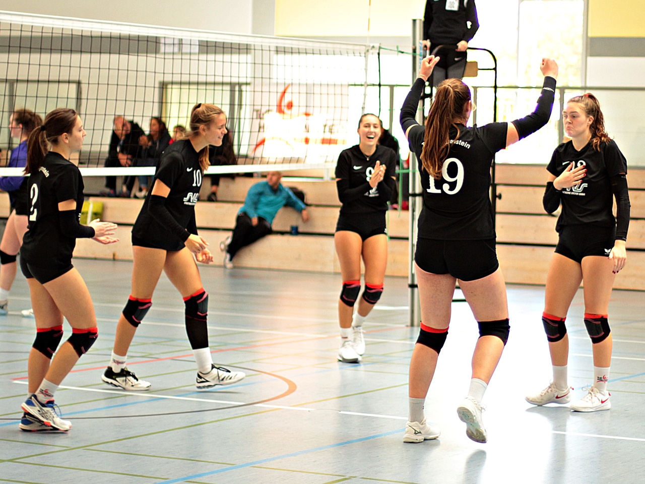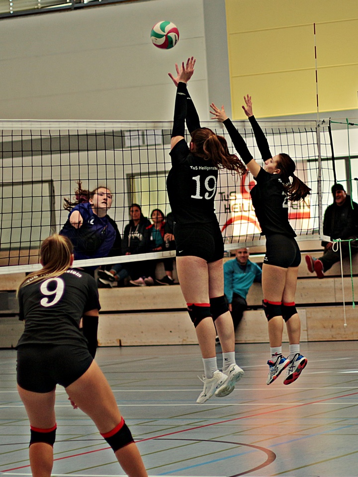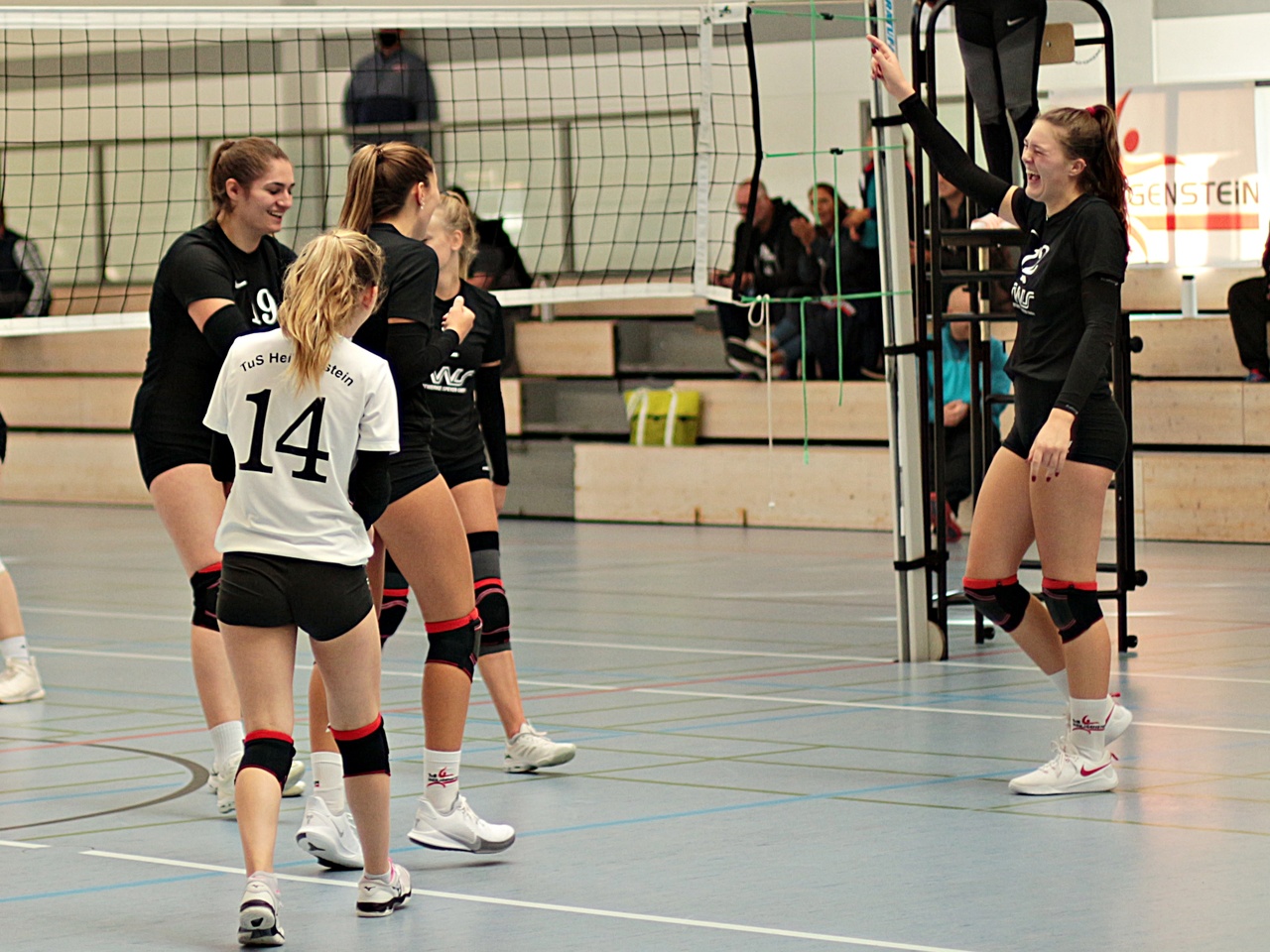 Auch im zweiten Satz wiederholte sich das Muster: leichter Rückstand für Heiligenstein, immer wieder ausgleichen und dann beim Stand von 12:12 den Druck erhöhen. Rodenbach blieb die ganze Zeit über sehr gut im Spiel, kam bis auf 23:19 heran, vergab dann die entscheidenden Punkte. Nele Schwab schlug noch einmal auf zum Matchball, den Jasmin Rudolph schließlich sicher zum 25:19 verwandelte.