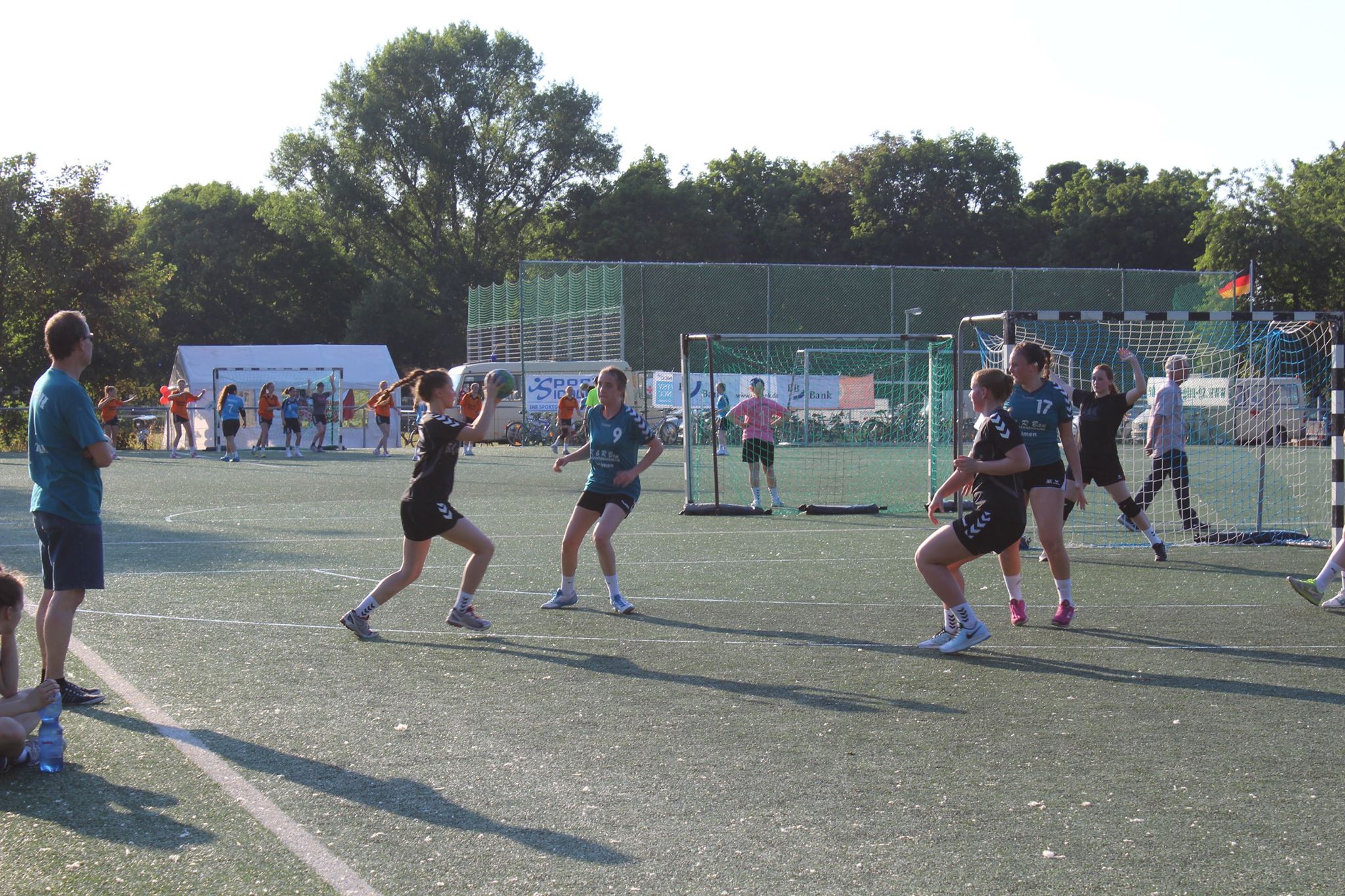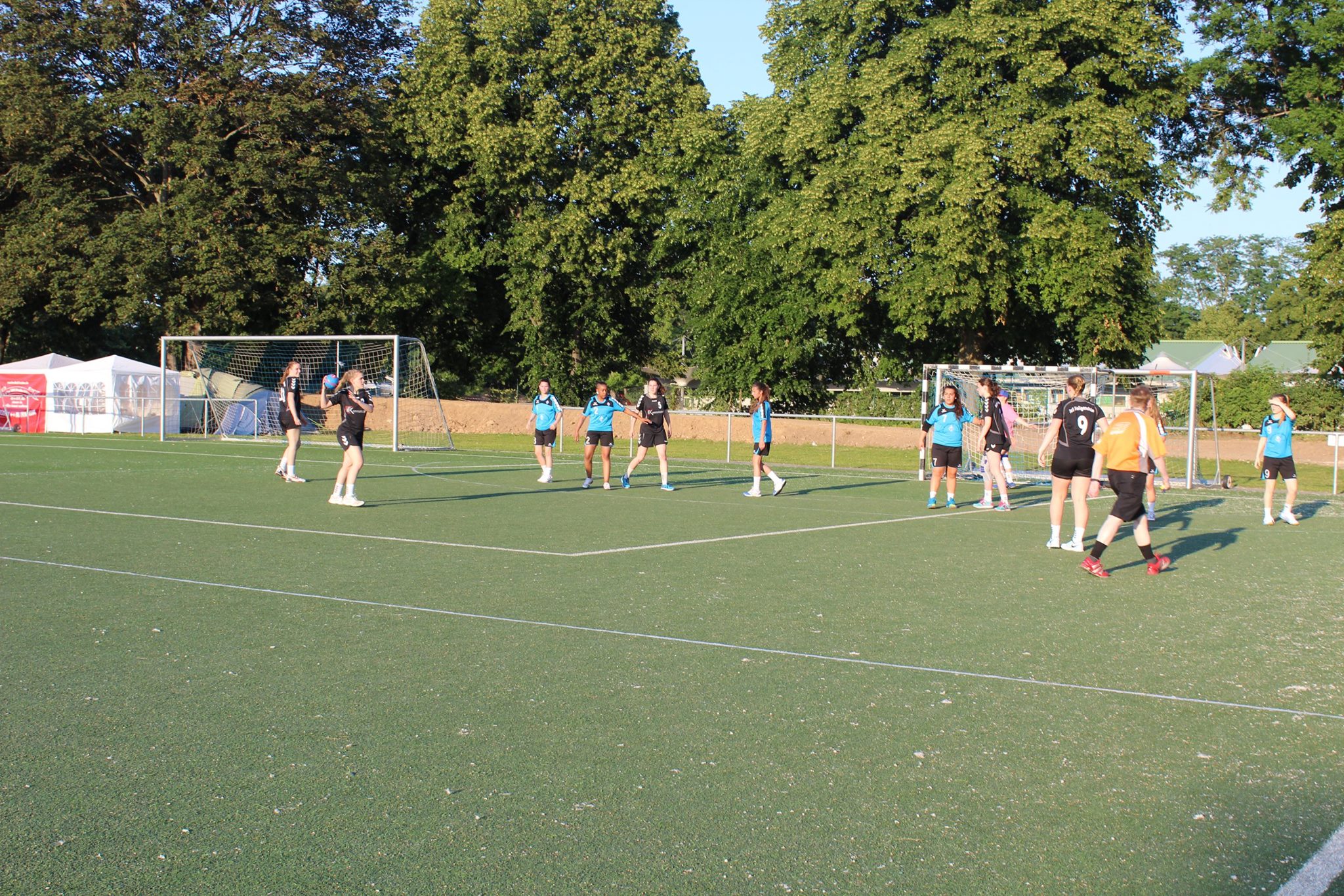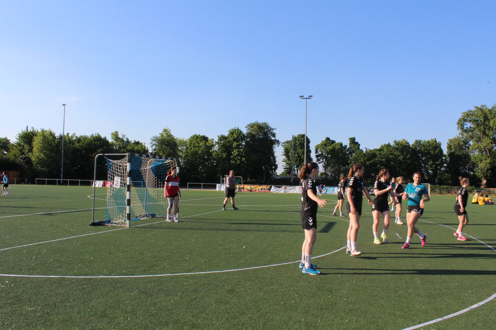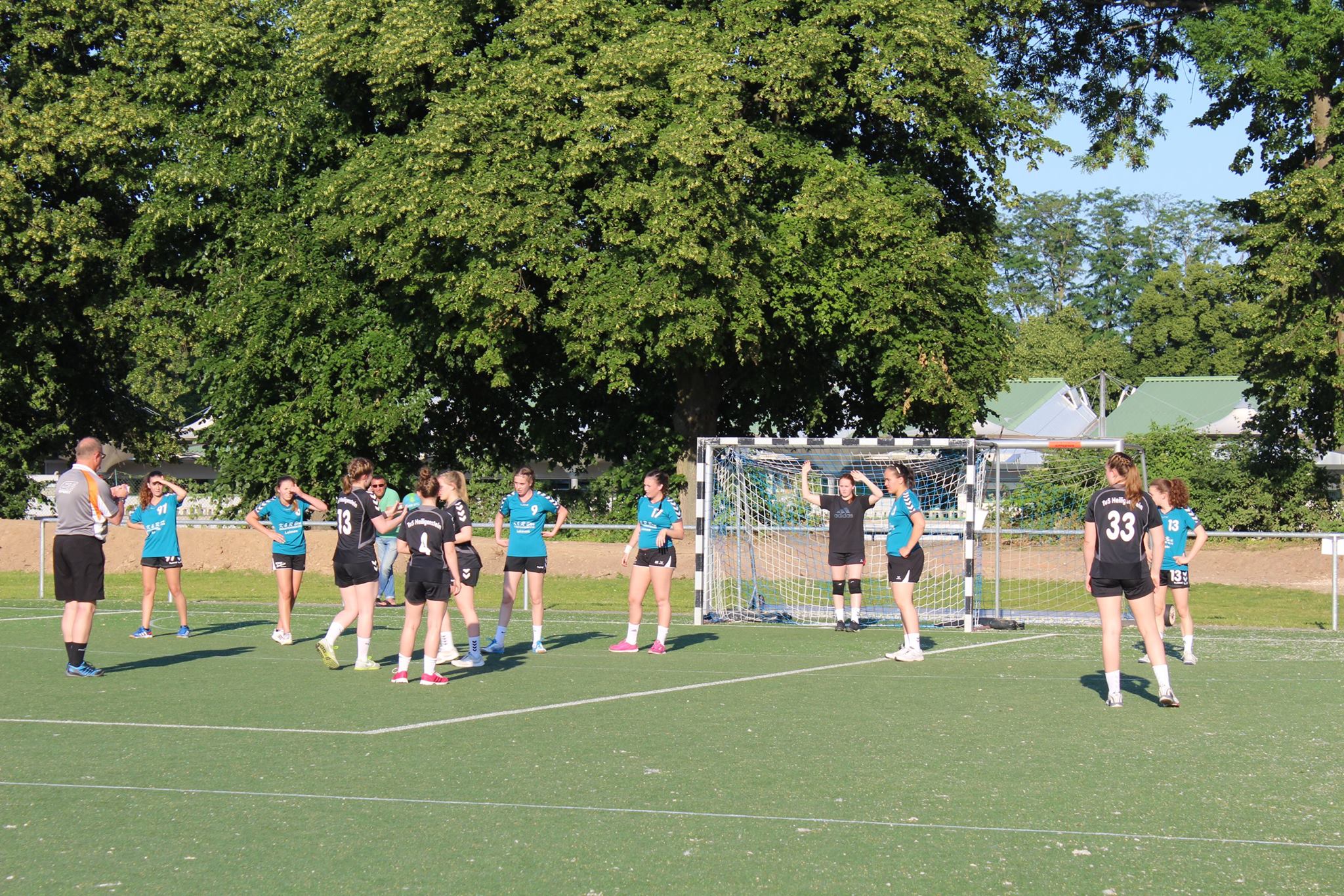 Tags darauf stand das Rasenplatzturnier der TuS Neuhofen auf dem Plan. Hier gab es eine Doppelrunde mit jeweils 2×9 Minuten Spielzeit. Gegner waren der HSC Frankenthal (6:5 und 11:5) und die TG Waldsee (17:1 und 18:4), die den Turniersieg des TuS Heiligenstein nicht verhindern konnten.