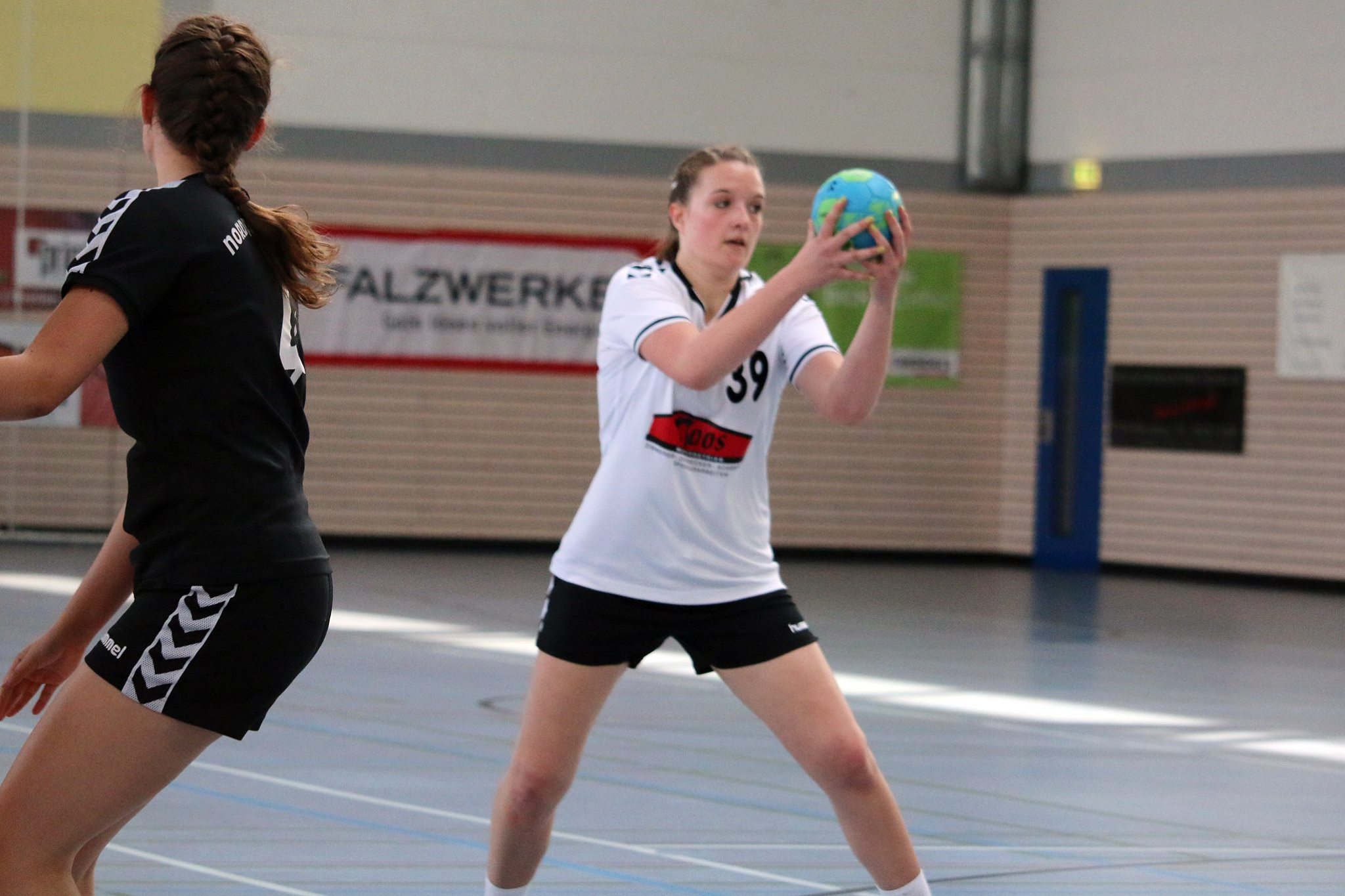 Die erste Hälfte war schon ein Test für die bald beginnenden Qualifikationsspiele der zukünftigen neuen A-Jugend, wobei aus Altersgründen nur Sahra Sammet zu den Damen aufrückt. Nach gutem Start funktionierten verständlicherweise die verschiedenen Deckungsvarianten nur teilweise, insbesondere von den Außenpositionen konnten die Gäste mehrere Treffer erzielen. Nach dem Start mit 4:1 kippte somit das Spiel und die „Nordpfälzer Wölfe“ lagen mehrfach mit zwei Treffern vorne. Gegen Ende der ersten Halbzeit gelangen unserem Team fünf Tore in Folge vom 11:13 auf 16:13.