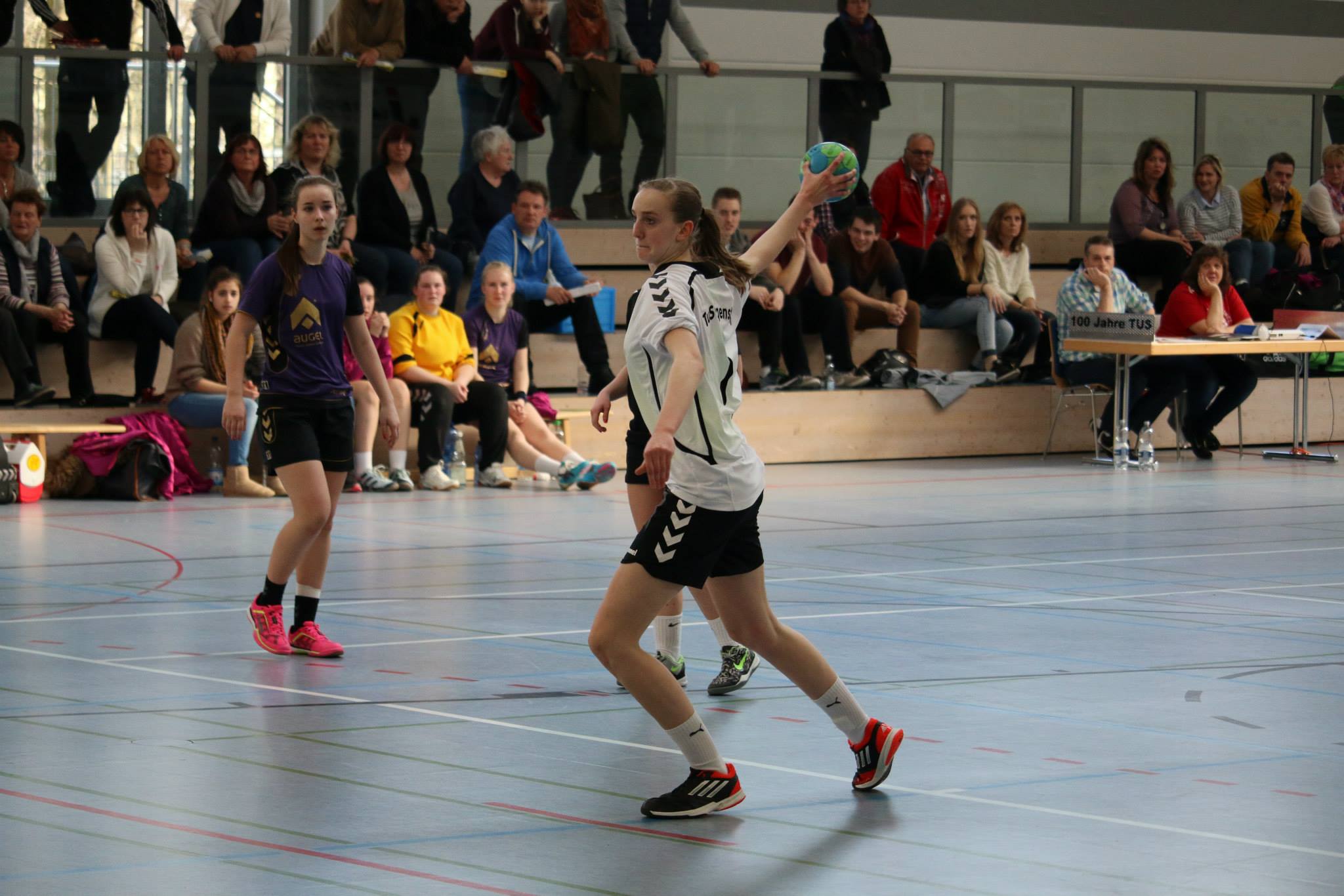 25. März 2015Die weibliche B-Jugend beendet die Saison 2014/2015 zu Hause ungeschlagen und bezwingt den Namensvetter aus Weibern mit 27:18.