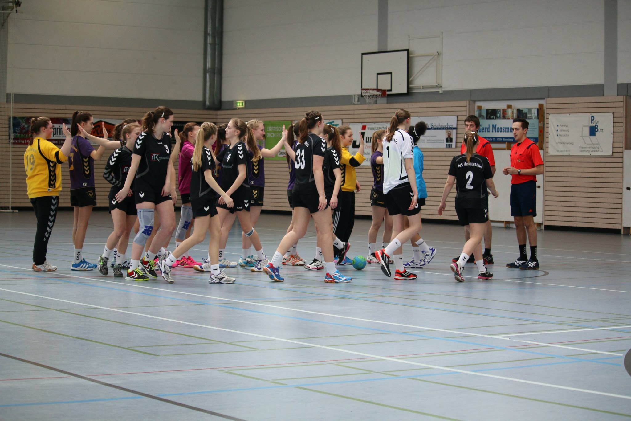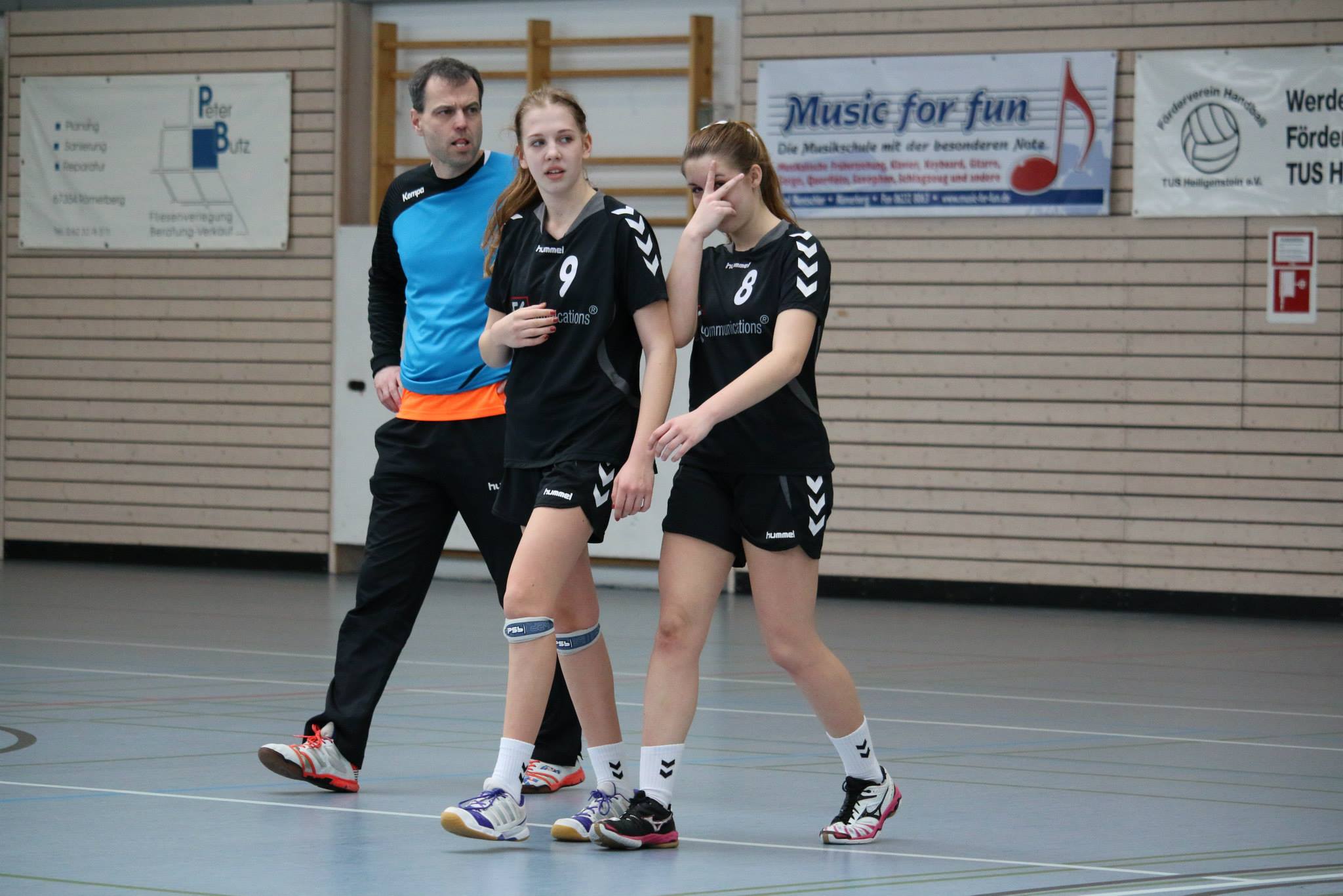 Knapp 100 Zuschauer sahen in der ersten Halbzeit eine sehr gute Abwehrleistung der Einheimischen, die die Partie über 2:0, 4:1, 6:2 und 14:3 bis zur Pause beim 14:4 dominierten. Im Angriff wurden die Chancen gut herausgespielt und oft genutzt. Nach dem Seitenwechsel waren die Heiligensteiner Mädchen im Defensivverbund nicht mehr so beweglich und bekamen seltener Zugriff auf ihre Gegenspielerinnen. In der Offensive wurde größzügiger mit den Möglichkeiten umgegangen und die Anzahl der technischen Fehler häufte sich. Nach dem 24:10 konnten die Gäste aus der Eifel bis zum Ende der Begegnung, die von den Unparteiischen Marzetz/Webel geleitet wurde, auf 27:18 verkürzen. Die beiden C-Jugendspielerinnen Celine Müller und Lara Sengel fügten sich gut in das Spielgeschehen ein und sorgten für Entlastung der Akteurinnen, die unmittelbar danach noch ein A-Jugendspiel zu absolvieren hatten.